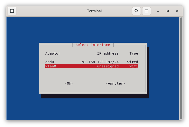 on choisit la carte réseau « wlan0 » qui est notre carte wifi.