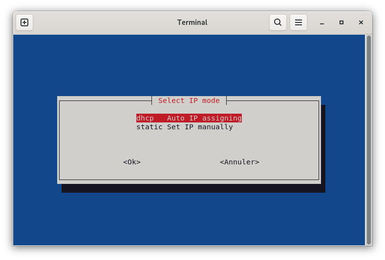 on choisi dhcp (on laisse la box attribuer une adresse IP)