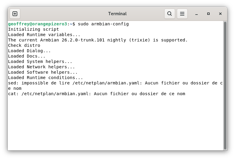 On lance armbian-config