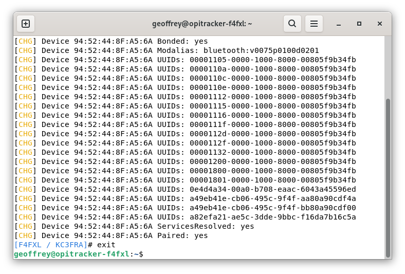 Une fois l’appairage terminé, quittez bluetoothctl en tapant :