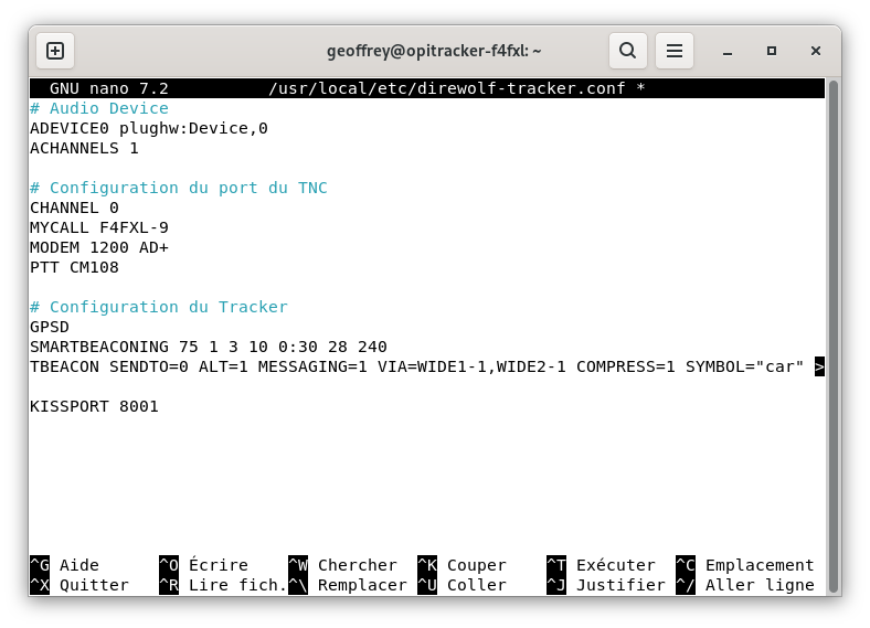 sudo nano /usr/local/etc/direwolf-tracker.confLangage du code : Bash (bash)